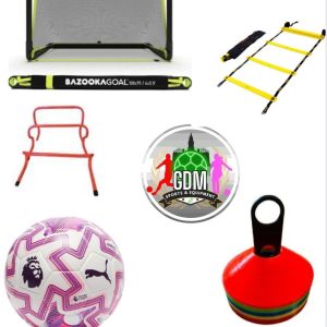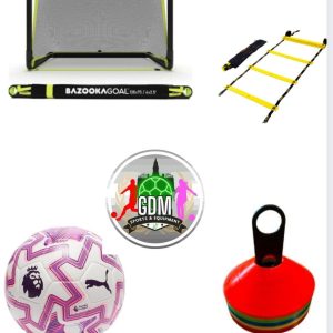 BazookaGoal Pop-Up Football Goal & Puma Orbita Cup PL Brilliance Football 25/26 & Set of 50 cones & 4m Agility Ladder & Set of 6 Hurdles