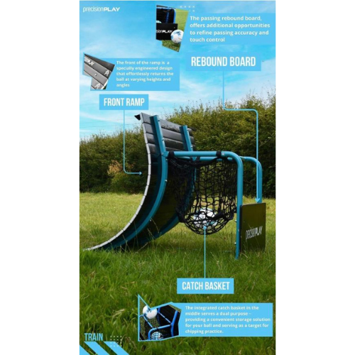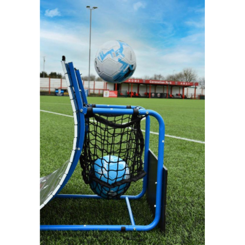 But the benefits don’t stop there. Positioned at the rear of the ramp is a passing rebound board, offering additional opportunities to refine passing accuracy and touch control. Meanwhile, the integrated catch basket in the middle of the Rebounder serves a dual purpose – providing a convenient storage solution for your ball between drills and serving as a target for chipping practice.